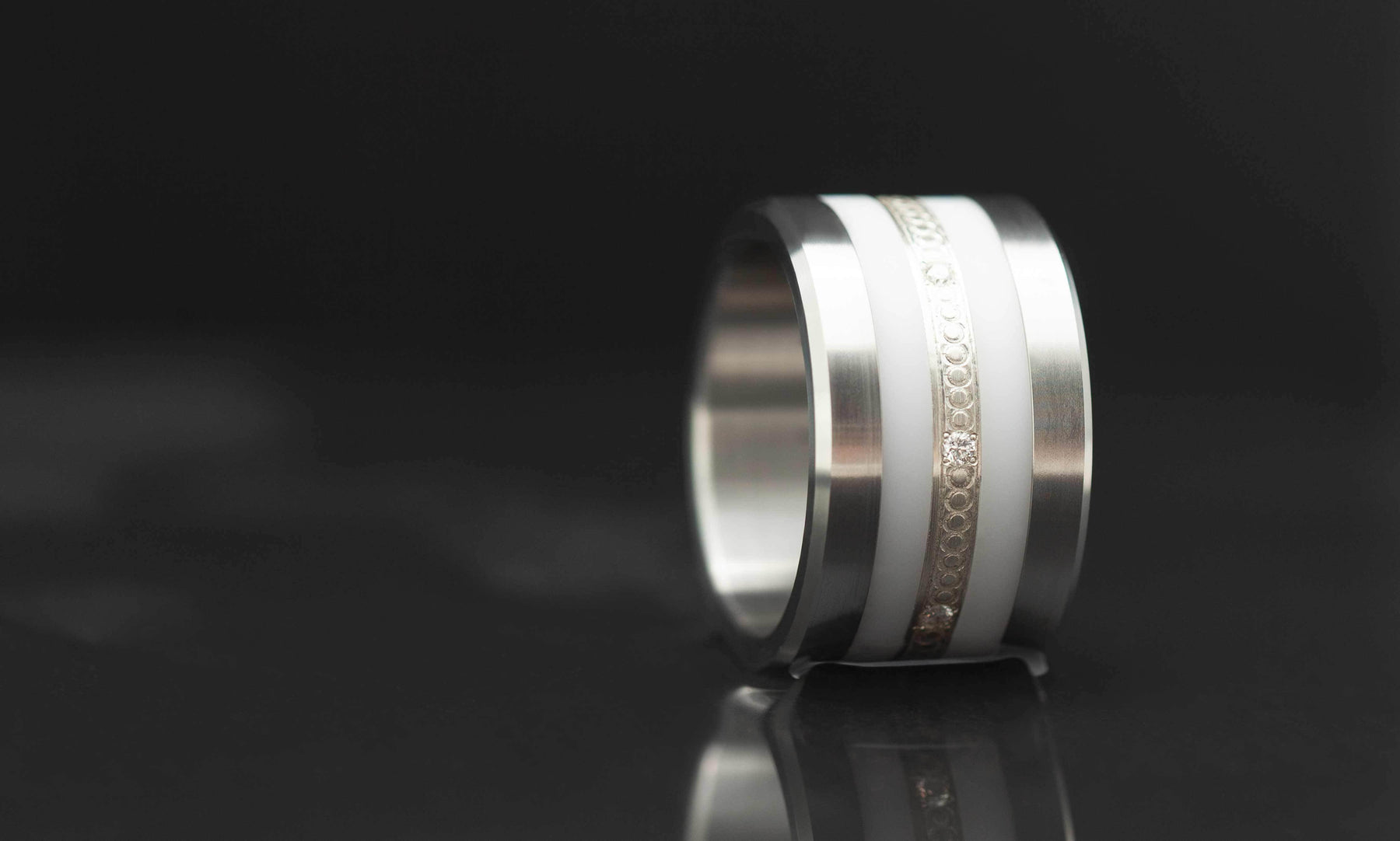 The ceramic is very resistant but shocks must be avoid, especially with other rings (applause).